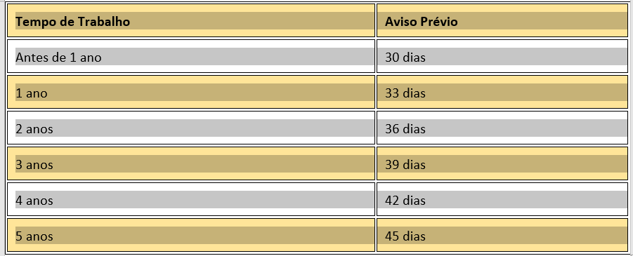 Na tabela abaixo podemos demonstrar a relação entre a quantidade a mais de dias trabalhados X o período final do aviso prévio
